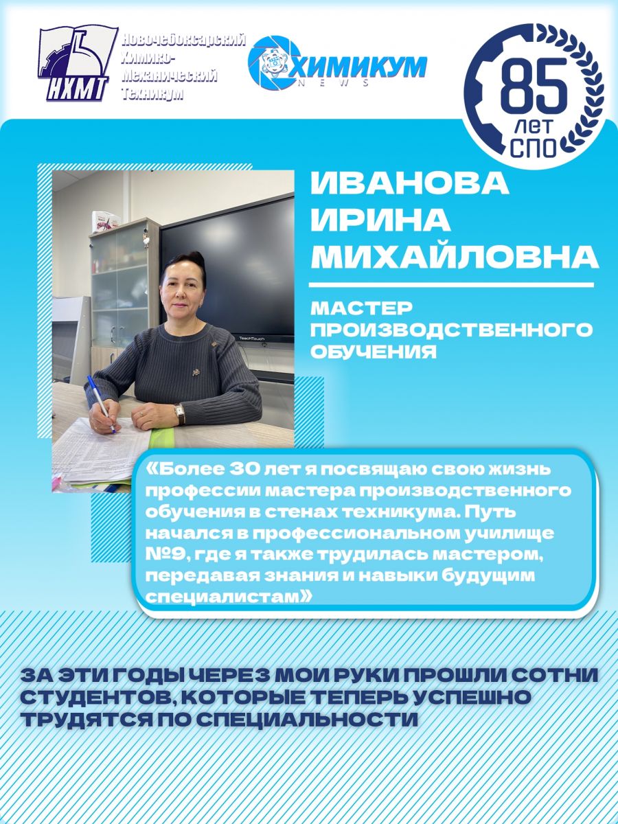 Интервью с преподавателем Ивановой Ириной Михайловной Новочебоксарского химико-механического техникума