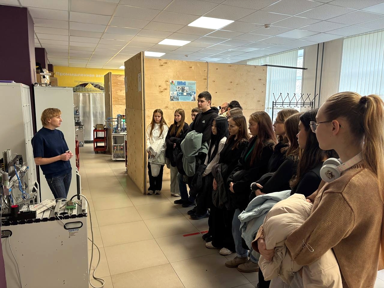 Экскурсия по техникуму: После мастер-класса ребята отправились изучать современные лаборатории и рабочие места. Им подробно рассказали о существующих профессиях и сферах деятельности, которыми занимаются выпускники техникума.