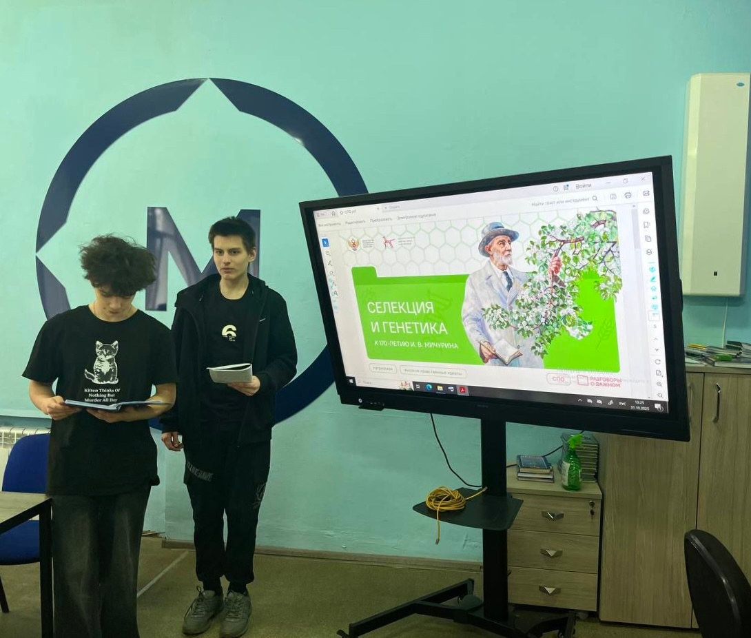 Студенты узнали о значении селекции и генетики в современном мире, о том, как работы Мичурина повлияли на развитие агрономии и сельского хозяйства. Обсудили его подходы к выведению новых сортов растений и их влияние на продовольственную безопасность.