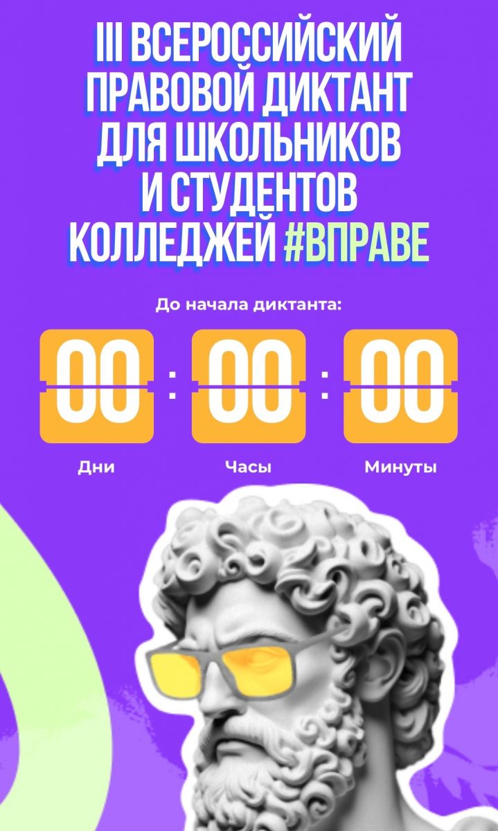 А чтобы закрепить знания, приняли участие в масштабном III Всероссийском правовом диктанте для школьников и студентов колледжей #ВПРАВЕ- всероссийском "чек-ап" правовых знаний!