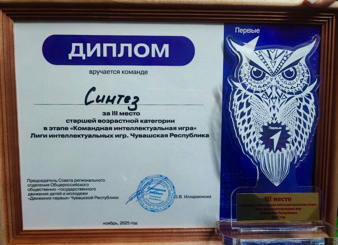 22 ноября 2025 года, состоялся грандиозный финал Лиги интеллектуальных игр ДВИЖЕНИЯ ПЕРВЫХ, где собрались самые умные и эрудированные команды! И мы с гордостью сообщаем: наша команда Ночебоксарского химико-механического техникума "СИНТЕЗ" показала потрясающий результат!