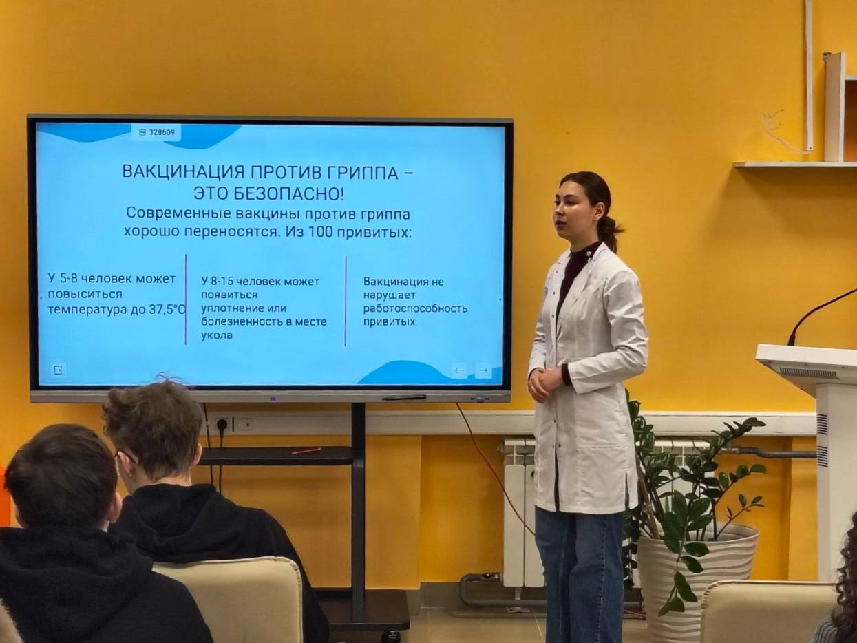 2 декабря 2025 года Анастасия Петровна провела информативную лекцию для студентов групп 25-ИО-029 и 25-ХО-129. Основное внимание было уделено актуальным вопросам вакцинации против гриппа, а также серьезным темам профилактики ВИЧ/СПИД и инфекций, передаваемых полотовым путем (ИППП). Студенты получили обширную информацию о факторах риска, методах диагностики и важности своевременной защиты.