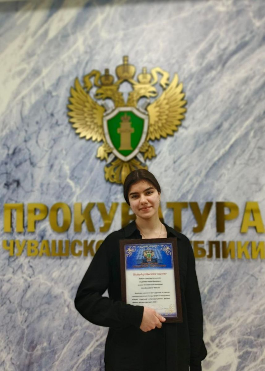 9 декабря 2025 года студентка Новочебоксарского химико-механического техникума, Арнаут Серафима Евгеньевна, посетила прокуратуру, где прошла увлекательная экскурсия и состоялось её награждение.