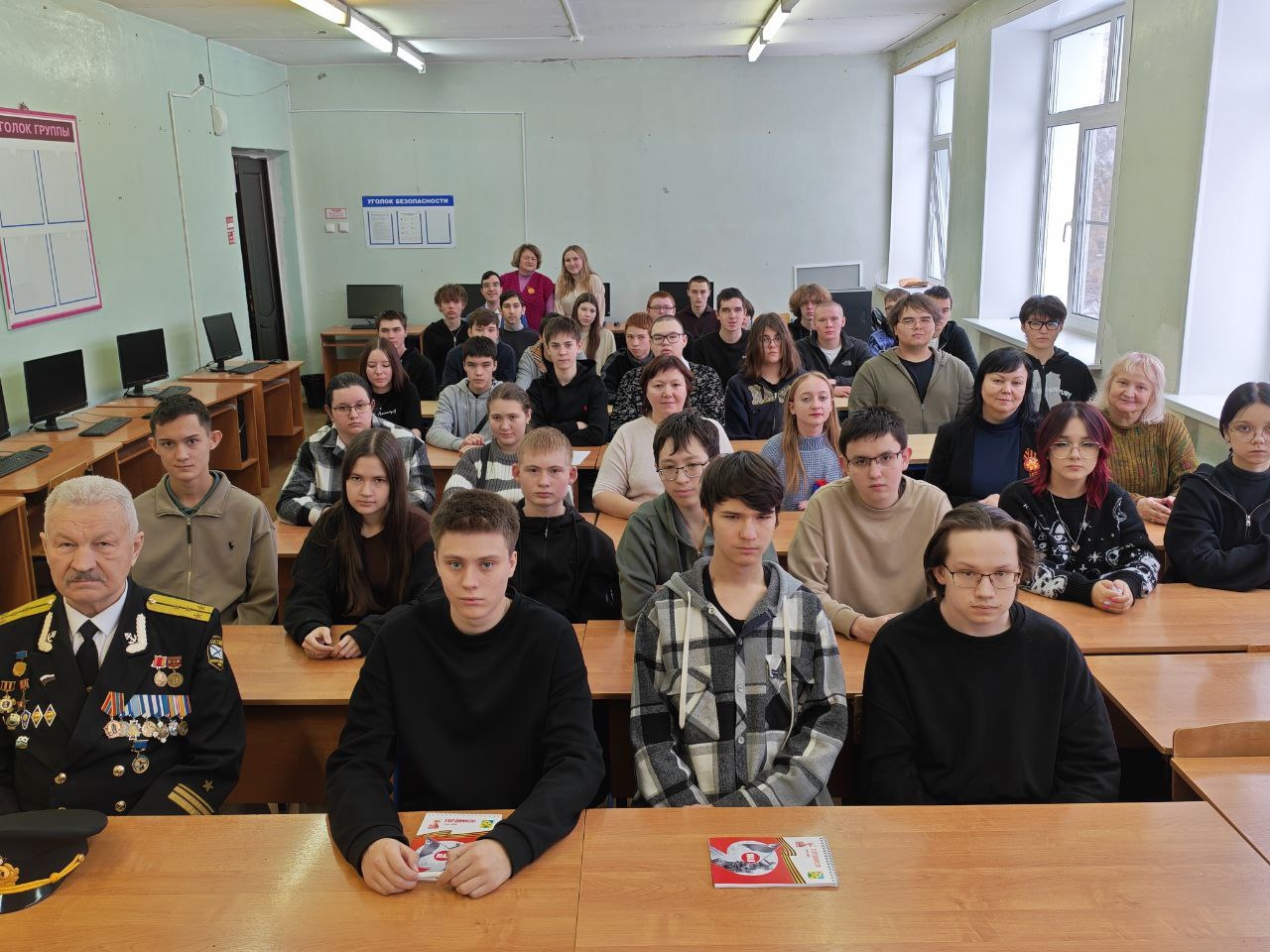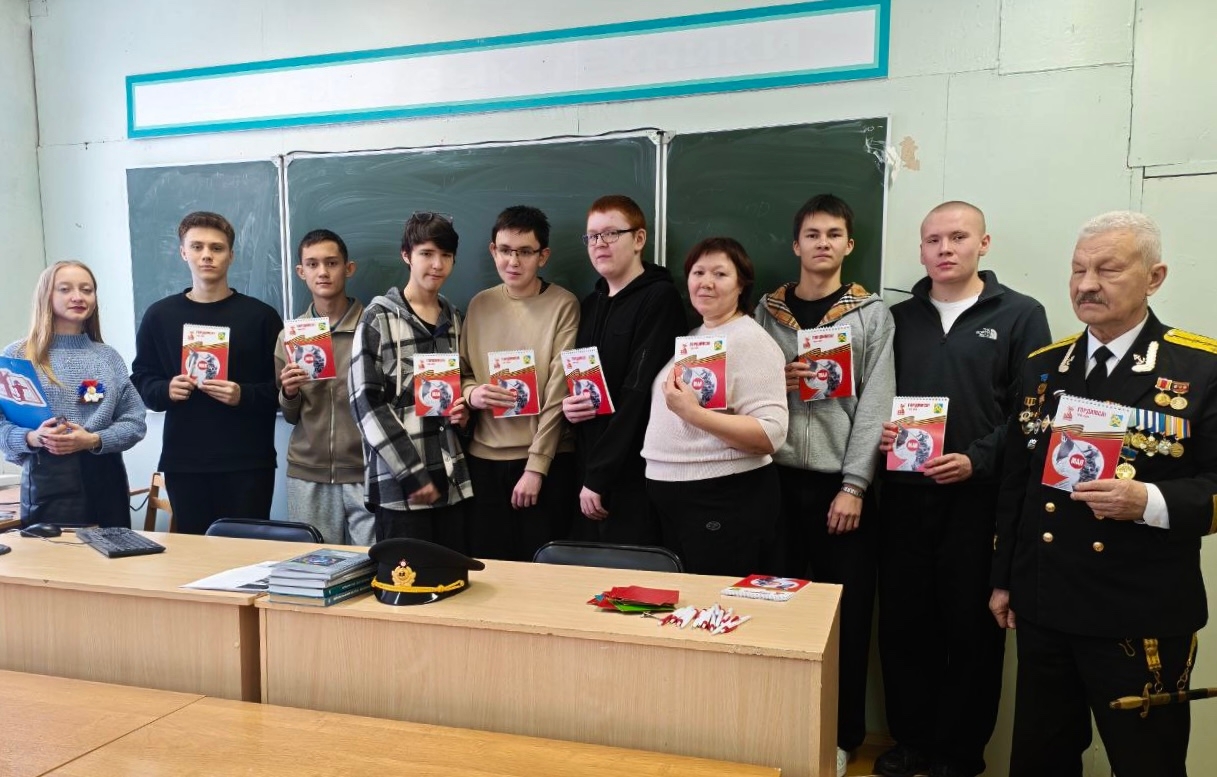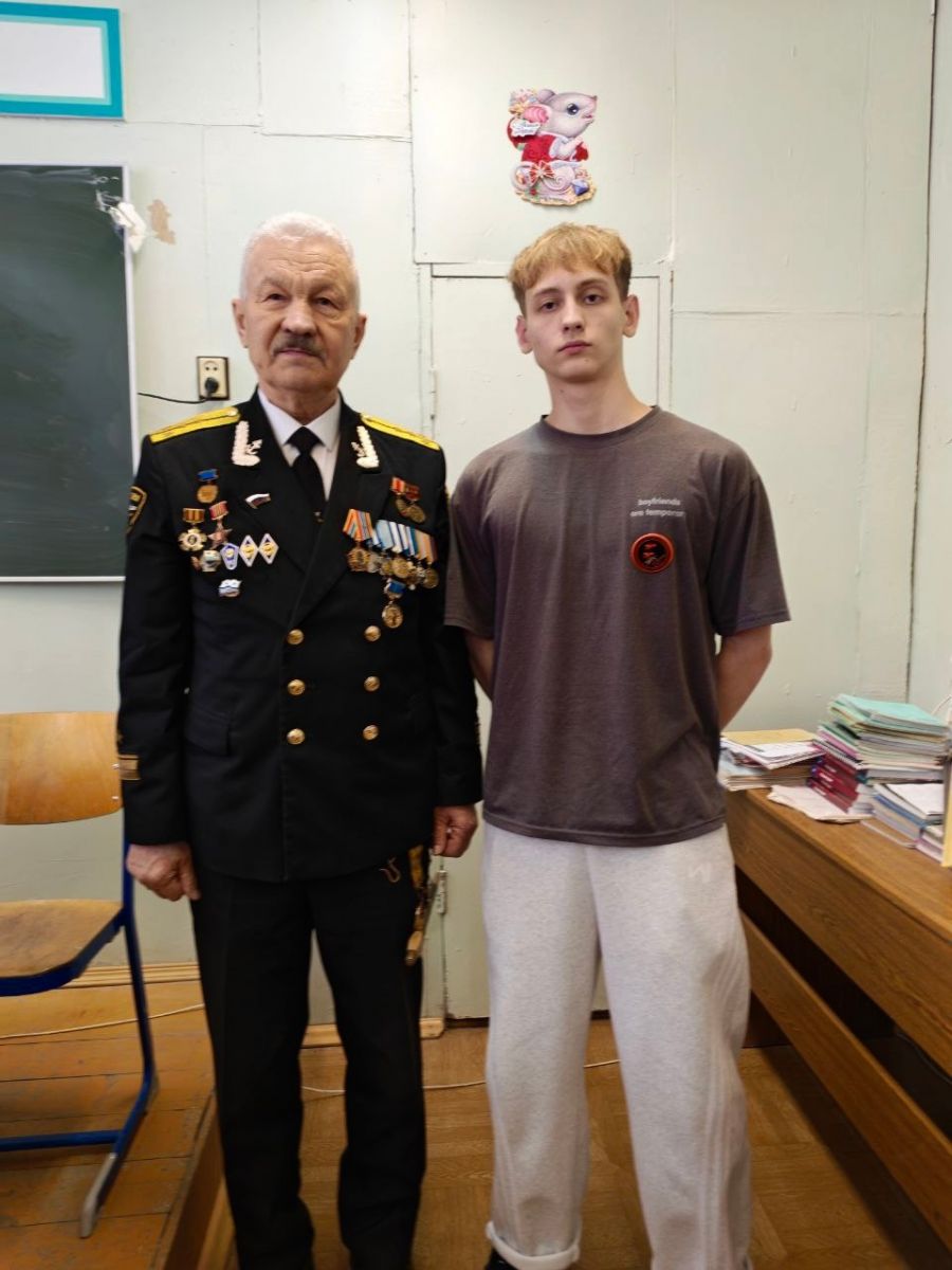 О подвиге моряков рассказал заместитель Председателя Чувашского отделения «Российского Союза Ветеранов» капитан-лейтенант Лаврентьев Василий Михайлович. Затем он вручил знак Поискового отряда «Пламенные сердца» вновь принятому в ряды поисковиков Сабинину Даниилу, студенту группы 11МЭТО.