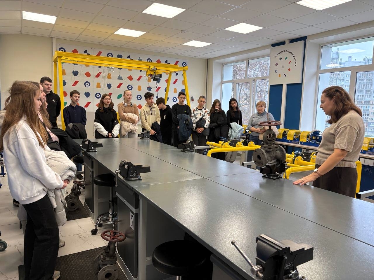 Экскурсия по техникуму: После мастер-класса ребята отправились изучать современные лаборатории и рабочие места. Им подробно рассказали о существующих профессиях и сферах деятельности, которыми занимаются выпускники техникума.
